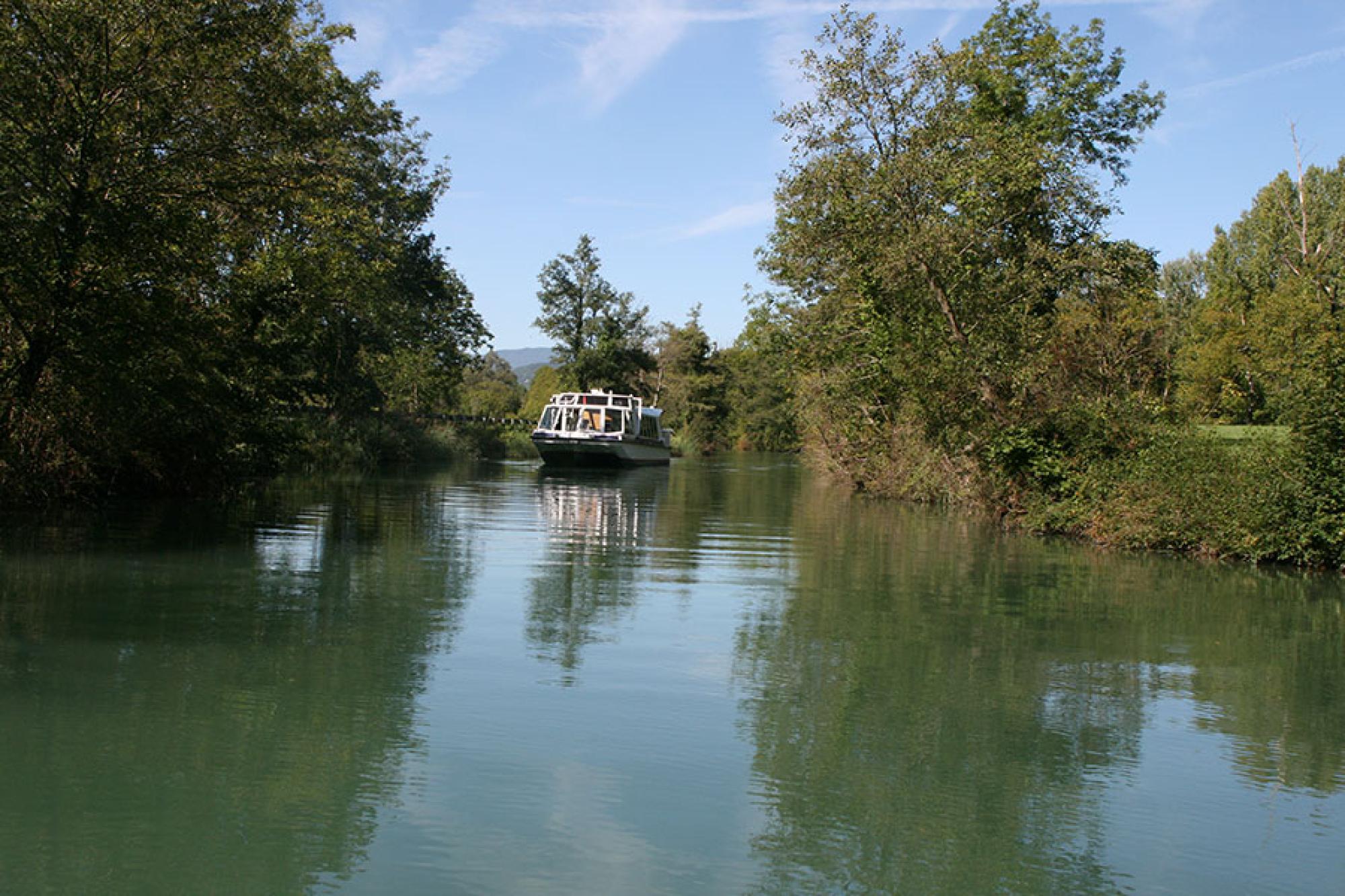 La croisière en bateau passe par le lac et le canal de Savières.